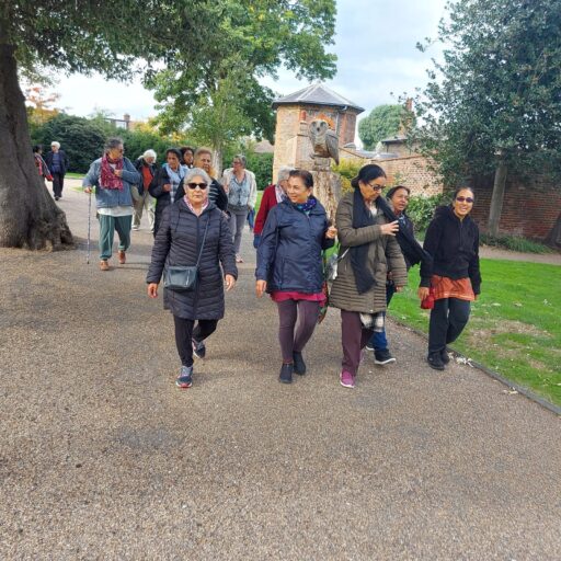 on Monday 3rd October a group of 25 plus women met in front of the Valentines mansion in the early afternoon. Connecting the established Sangham group and Redbridge Faith Forum members, the women enjoyed a brisk leisurely walk around Valentines Park connecting with each other. It evoked conversations surrounding what people do in their spare time, their families, and their passions.